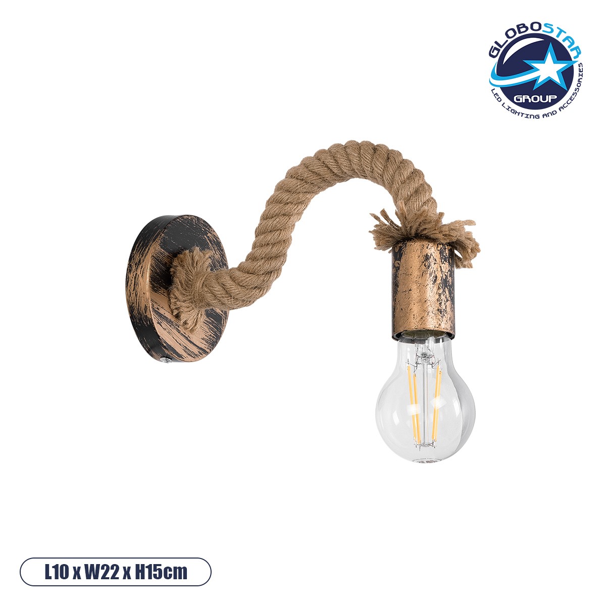 Σειρά : SADONΕίδος : ΜονόφωτοΧρώμα Σώματος : Χάλκινο , ΜπεζΥλικό Κατασκευής : Μέταλλο , Σχοινί - ΤριχιάΤεχνοτροπία : ΣχοινίΎφος : VintageΤύπος Φωτισμού : Με Λαμπτήρα (Δεν περιλαμβάνεται)Ντουί : E27Ποσότητα Ντουί : 1Προτεινόμενος Τύπος Λάμπας : A60Τρόπος Τοποθέτησης : ΕπιτοίχιοΤάση Λειτουργίας : AC 220-240VΠροσοχή : Ο Λαμπτήρας δεν Περιλαμβάνεται στη ΣυσκευασίαΒαθμός Προστασίας : IP20Εύρος Θερμοκρασίας Λειτουργίας : -20…+40 °Cproducts_dimensions_weight_tab_2