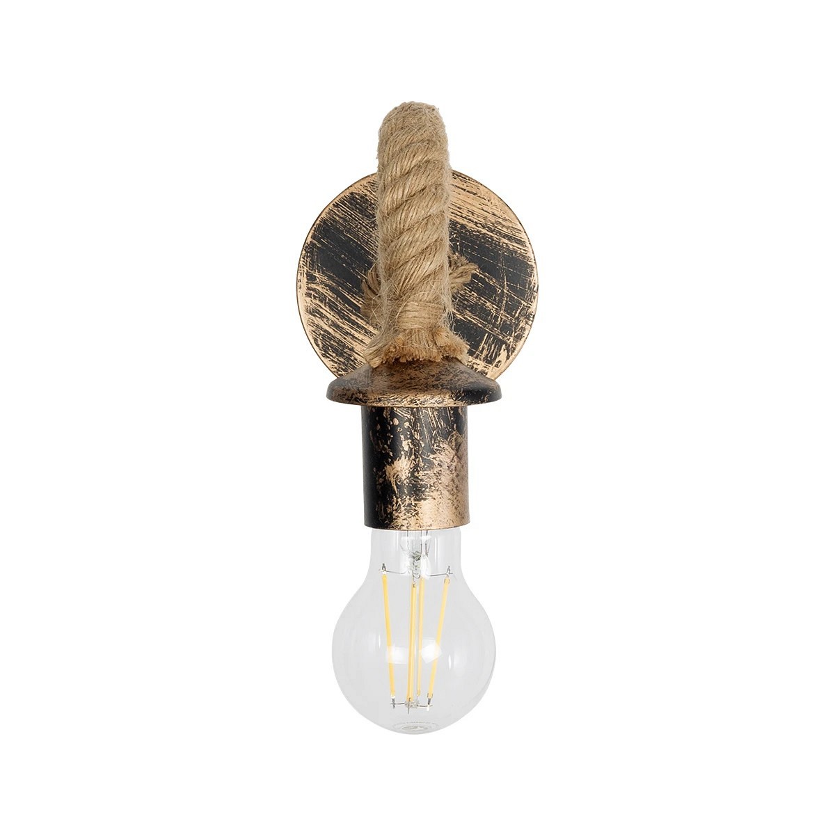 GloboStar® DAKER 01184 Vintage Φωτιστικό Τοίχου Απλίκα Μονόφωτο Μαύρο Μεταλλικό Με Μπεζ Σχοινί Μ21 x Π12 x Υ16cm