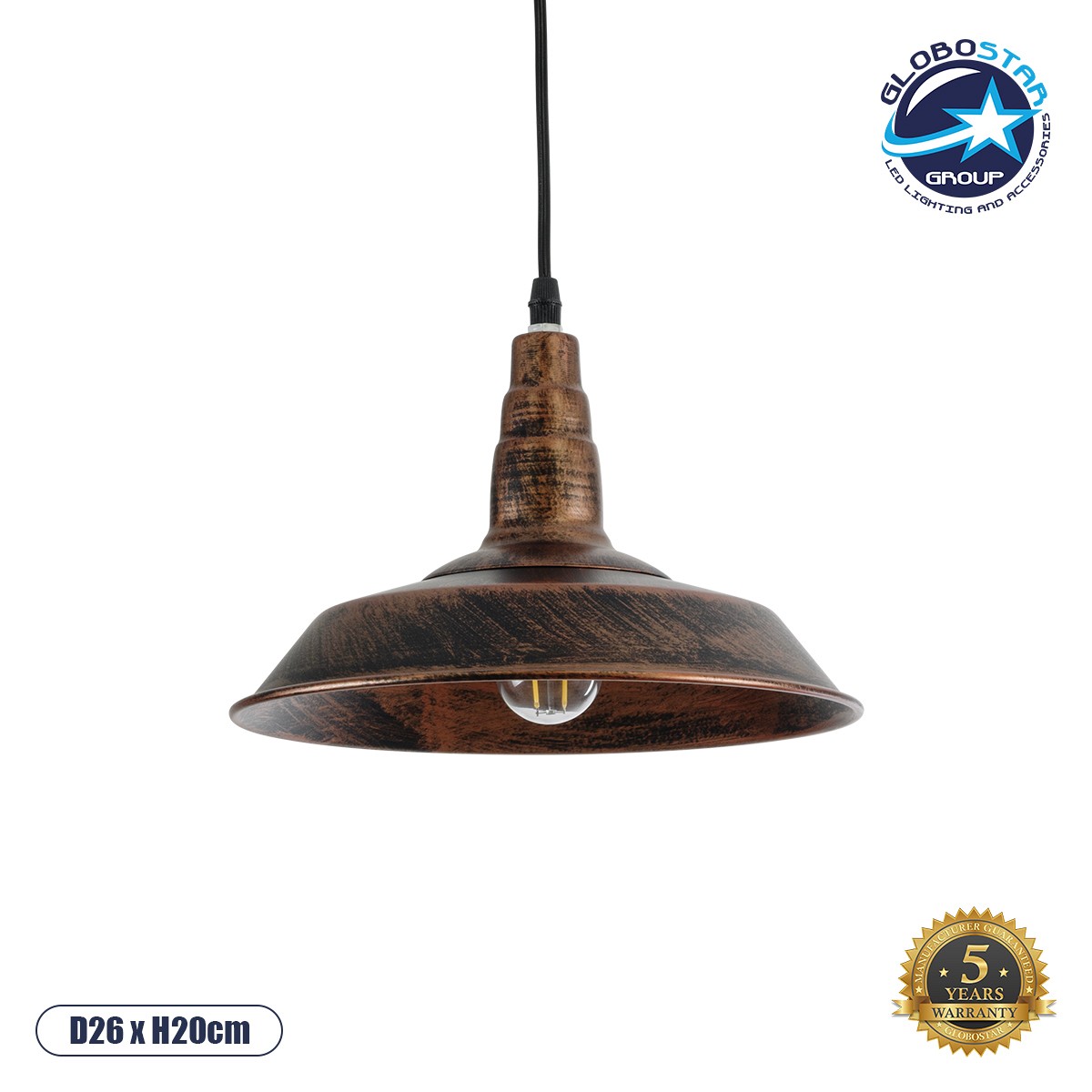 GloboStar® RAY 01047 Vintage Industrial Κρεμαστό Φωτιστικό Οροφής Μονόφωτο Καφέ Σκουριά Μεταλλικό Καμπάνα Φ26 x Y25cm