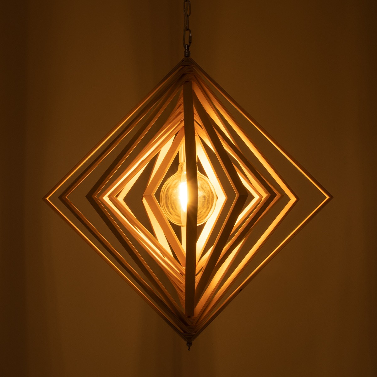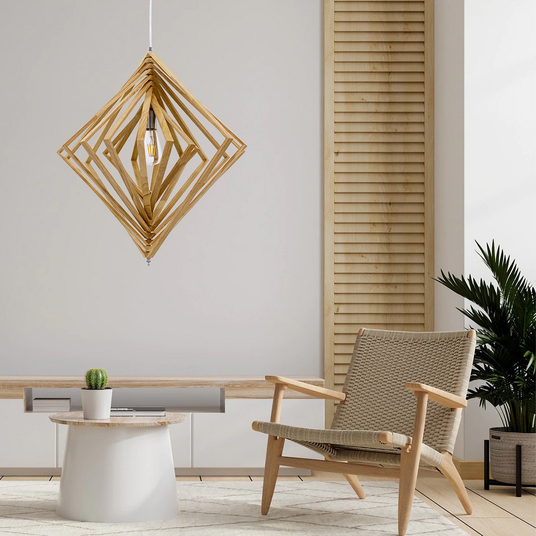 GloboStar® OCTAVE 01431 Μοντέρνο Κρεμαστό Φωτιστικό Οροφής Μονόφωτο Μπεζ Ξύλινο Μ64 x Π64 x Y66cm