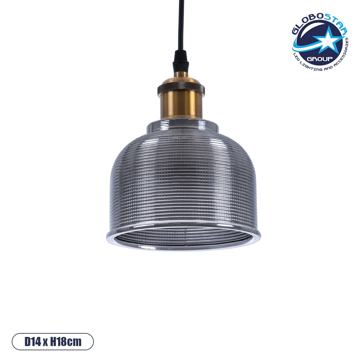 GloboStar® SEGRETO 01449 Vintage Κρεμαστό Φωτιστικό Οροφής Μονόφωτο Μαύρο Γυάλινο Διάφανο Καμπάνα με Χρυσό Ντουί Φ14 x Υ18cm
