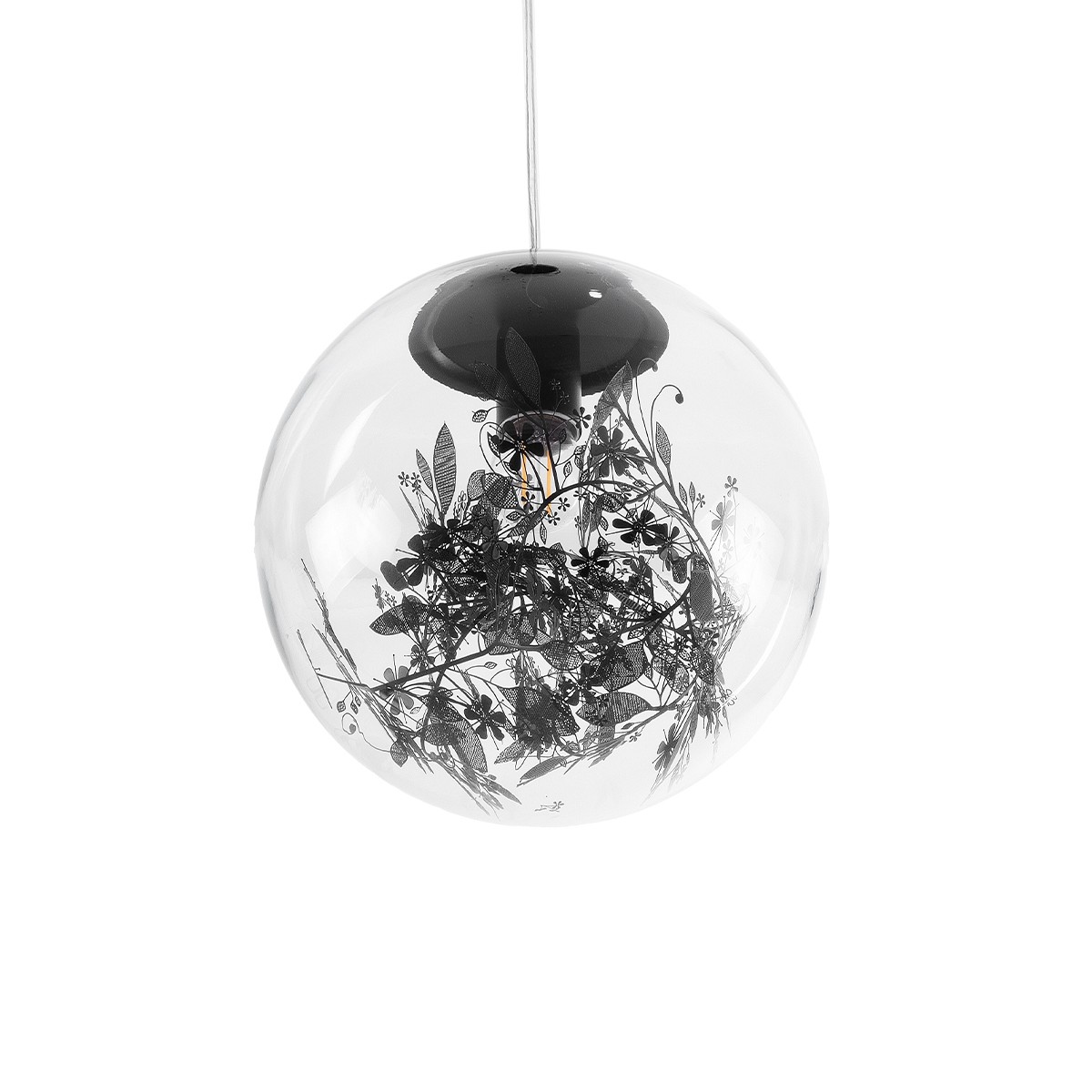 GloboStar® HARPER 01512 Μοντέρνο Κρεμαστό Φωτιστικό Οροφής Μονόφωτο Γυάλινο Διάφανο με Μαύρη Γιρλάντα Φ25 x Υ30cm