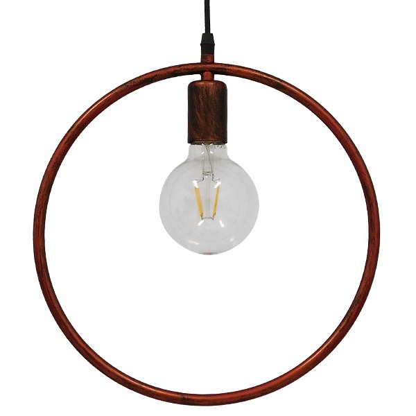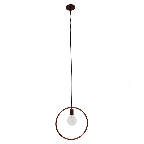 GloboStar® OMICRON 01579 Μοντέρνο Κρεμαστό Φωτιστικό Οροφής Μονόφωτο Καφέ Σκουριά Μεταλλικό Φ33 x Π4 x Υ33cm