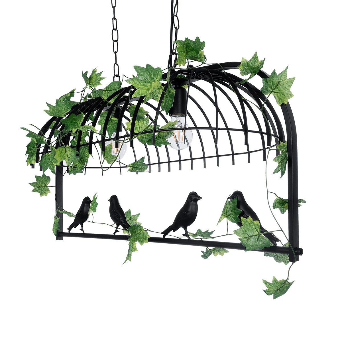 GloboStar® NEST 01643 Vintage Industrial Κρεμαστό Φωτιστικό Οροφής Δίφωτο Μαύρο Μεταλλικό Πλέγμα Μ73.6 x Π37.5 x Y38cm
