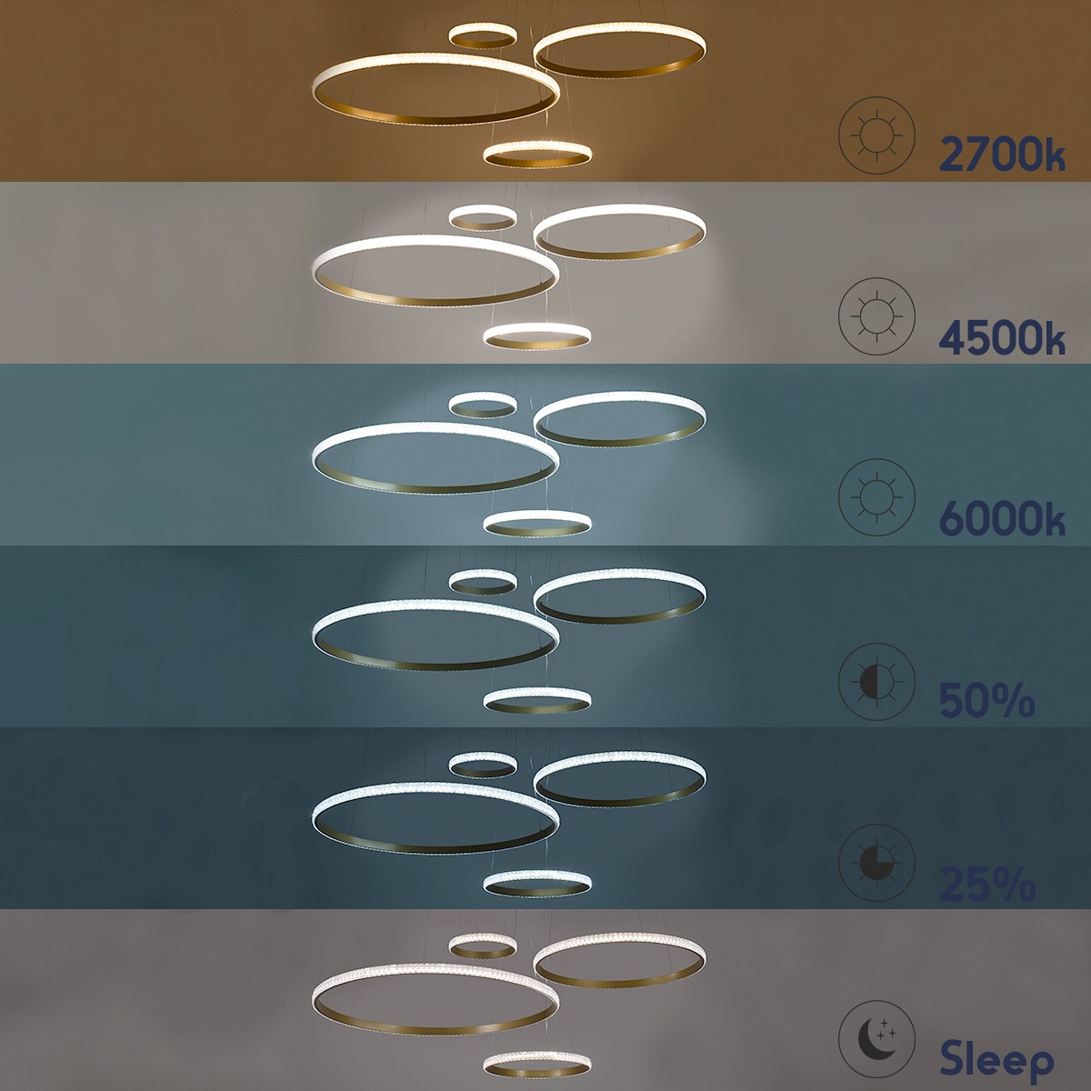 Σειρά : DIAMONDΕίδος : ΤρίφωτοΧρώμα Σώματος : Χρυσό ΒούρτσαςΥλικό Κατασκευής : ΑλουμίνιοΤεχνοτροπία : ΚύκλοςΎφος : ΜοντέρνοΤύπος Φωτισμού : Ενσωματωμένο LEDΤρόπος Τοποθέτησης : ΚρεμαστόΜέγεθος : 150εκΤάση Λειτουργίας : AC 220-240VΡυθμιζόμενη Ένταση : ΝαιΙσχύς : 150WΙσοδύναμη Ισχύς : 550WΩφέλιμη Φωτεινή Ροή : 18379lmΑπόδοση Φωτεινής Ροής : 123lm/WΘερμοκρασία Χρώματος : Ρυθμιζόμενο Λευκό CCTΔείκτης Απόδοσης Χρωμάτων CRI/RA : ≥80CRI/RAΓωνία Δέσμης : 360°Τύπος LED : SMDΔυνατότητες & Λειτουργίες : Εναλλαγή Χρωμάτων , ΧειριστήριοΒαθμός Προστασίας : IP20Εύρος Θερμοκρασίας Λειτουργίας : -20…+40 °CΟνομαστική Διάρκεια Ζωής : ≥30000 ΏρεςΑριθμός Κύκλων Εναλλαγής : ≥50000 Κύκλοι On/OffΧρόνος Έναυσης 100% : Άμεση Εκκίνηση <0.5 sproducts_dimensions_weight_tab_2