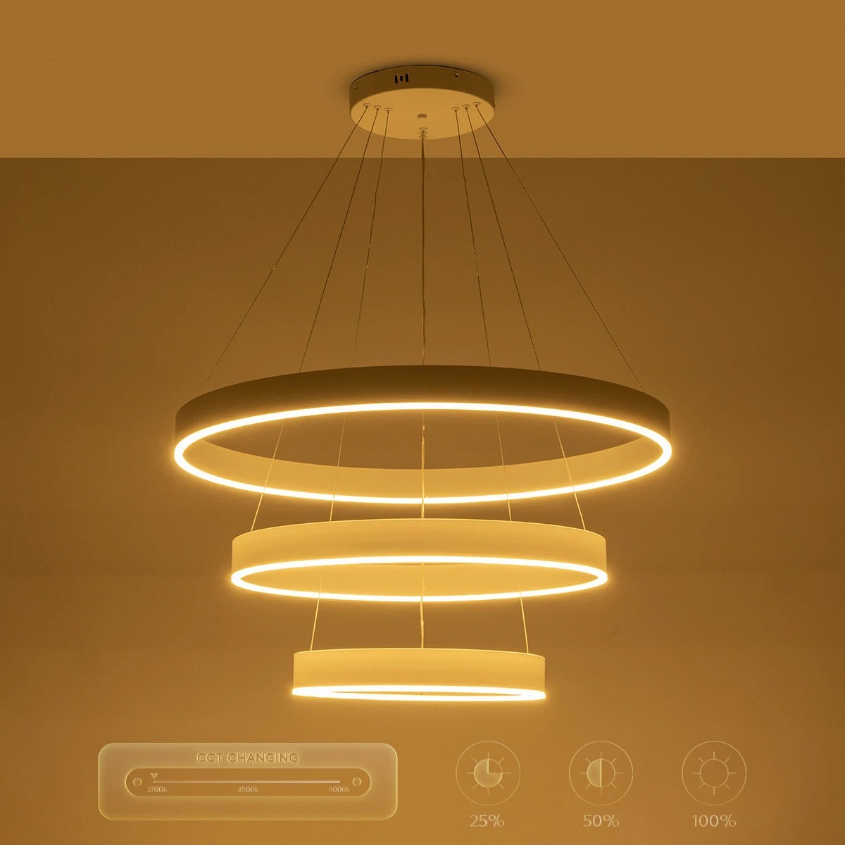 • kelvo® VENOM 61189 Μοντέρνο Κρεμαστό Φωτιστικό Οροφής LED 120W 14158lm 120° AC 220-240V IP20 Ρυθμιζόμενο Λευκό CCT με Χειριστήριο από 2700K έως 6000K Dimmable - Lumileds SMD Chip - Λευκό Ματ - Μ80 x Π80 x Υ60cm - 3 Χρόνια Εγγύηση