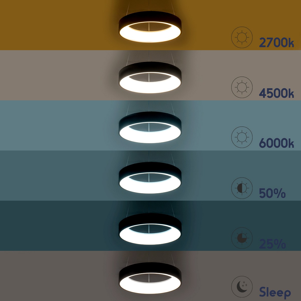 Σειρά : SALEMΕίδος : ΜονόφωτοΧρώμα Σώματος : ΜαύροΥλικό Κατασκευής : ΜέταλλοΤεχνοτροπία : ΚύκλοςΎφος : ΜοντέρνοΤύπος Φωτισμού : Ενσωματωμένο LEDΤρόπος Τοποθέτησης : ΚρεμαστόΜέγεθος : 45εκΤάση Λειτουργίας : AC 220-240VΡυθμιζόμενη Ένταση : ΝαιΙσχύς : 75WΙσοδύναμη Ισχύς : 400WΩφέλιμη Φωτεινή Ροή : 8625lmΑπόδοση Φωτεινής Ροής : 115lm/WΘερμοκρασία Χρώματος : Ρυθμιζόμενο Λευκό CCTΔείκτης Απόδοσης Χρωμάτων CRI/RA : ≥80CRI/RAΓωνία Δέσμης : 120°Τύπος LED : SMDΔυνατότητες & Λειτουργίες : Εναλλαγή Χρωμάτων , ΧειριστήριοΒαθμός Προστασίας : IP20Εύρος Θερμοκρασίας Λειτουργίας : -20…+40 °CΟνομαστική Διάρκεια Ζωής : ≥30000 ΏρεςΑριθμός Κύκλων Εναλλαγής : ≥50000 Κύκλοι On/OffΧρόνος Έναυσης 100% : Άμεση Εκκίνηση <0.5 sproducts_dimensions_weight_tab_2