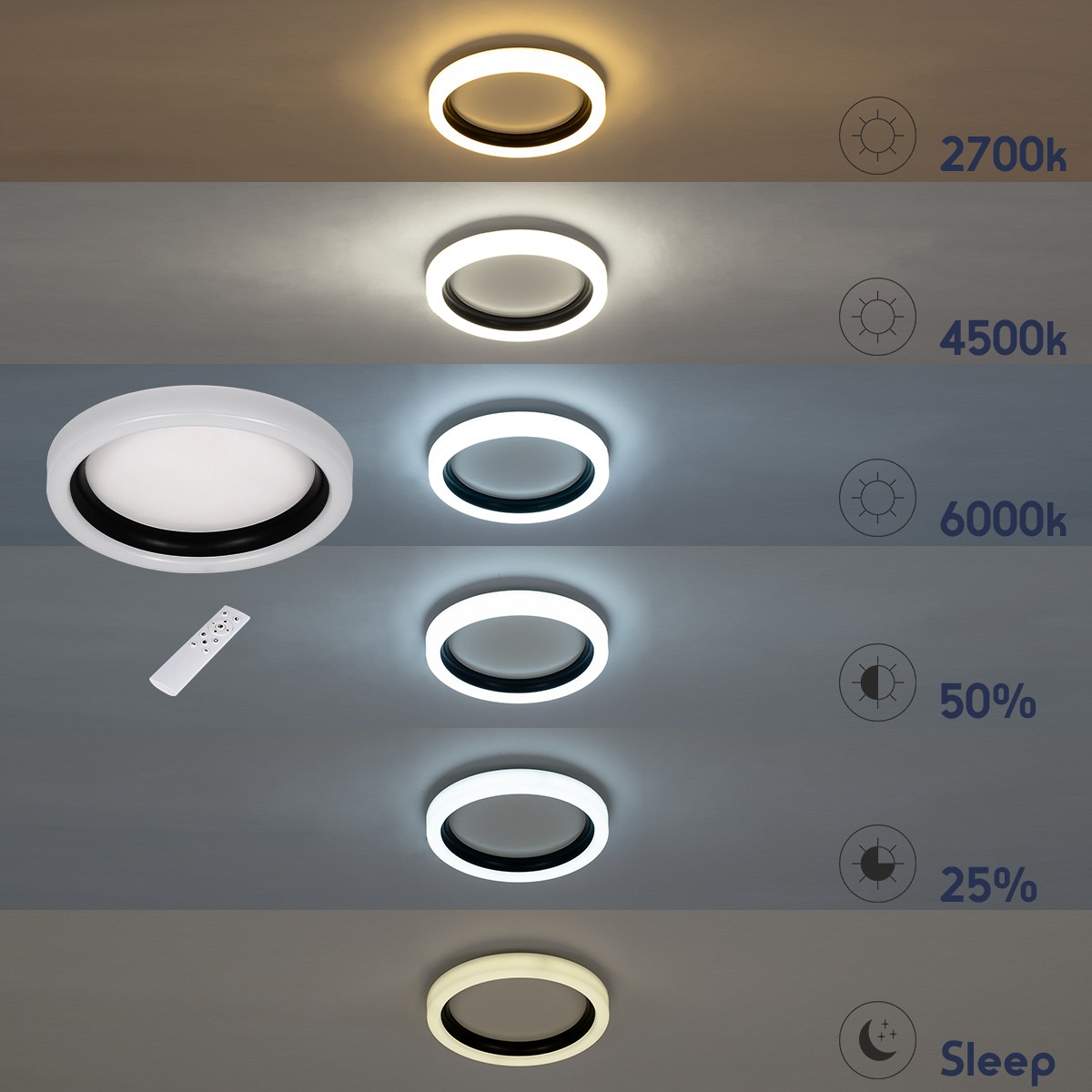 Σειρά : ARIANAΕίδος : ΜονόφωτοΧρώμα Σώματος : Λευκό , ΜαύροΥλικό Κατασκευής : ΠλαστικόΤεχνοτροπία : ΠλαφονιέραΎφος : ΜοντέρνοΤύπος Φωτισμού : Ενσωματωμένο LEDΤρόπος Τοποθέτησης : ΕπιφανειακόΜέγεθος : 48εκΤάση Λειτουργίας : AC 220-240VΡυθμιζόμενη Ένταση : ΝαιΙσχύς : 55WΙσοδύναμη Ισχύς : 200WΩφέλιμη Φωτεινή Ροή : 6376lmΑπόδοση Φωτεινής Ροής : 116lm/WΘερμοκρασία Χρώματος : Ρυθμιζόμενο Λευκό CCTΔείκτης Απόδοσης Χρωμάτων CRI/RA : ≥80CRI/RAΓωνία Δέσμης : 120°Τύπος LED : SMDΔυνατότητες & Λειτουργίες : Χειριστήριο , Εναλλαγή ΧρωμάτωνΒαθμός Προστασίας : IP20Εύρος Θερμοκρασίας Λειτουργίας : -20…+40 °CΟνομαστική Διάρκεια Ζωής : ≥30000 ΏρεςΑριθμός Κύκλων Εναλλαγής : ≥50000 Κύκλοι On/OffΧρόνος Έναυσης 100% : Άμεση Εκκίνηση <0.5 sproducts_dimensions_weight_tab_2