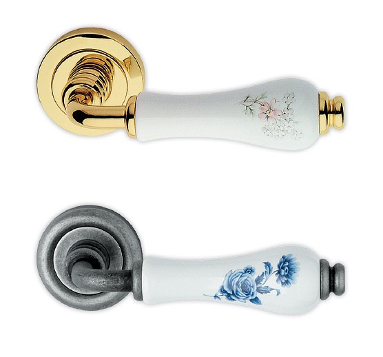 Roline Κ315 Πόμολο Πόρτας με Ροζέτα από Ορείχαλκο & Πορσελάνη Αντικέ-Κρακελέ Φ50x129mm