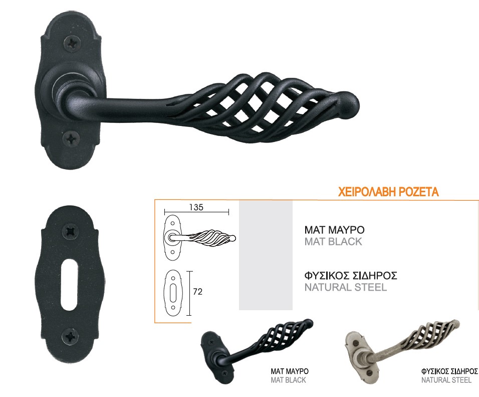 Roline Κ370 Πόμολο Πόρτας για PVC με Ροζέτα από Ορείχαλκο Μαύρο Ματ 32x62x114mm