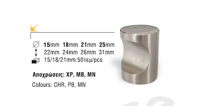 ΠΟΜΟΛΑΚΙ ΕΠΙΠΛΟΠΟΙΙΑΣ 15mm Ματ Νίκελ